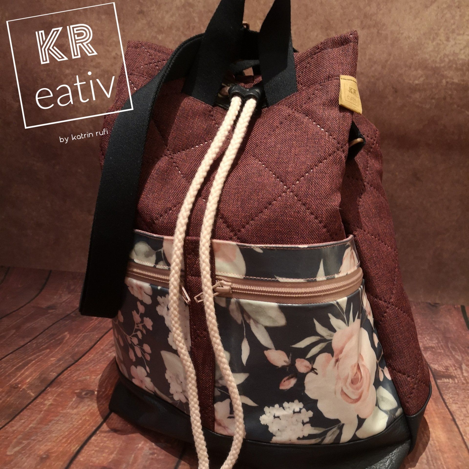 Rucksacktasche ENNA aus Wattiertem Taschenstepper, beschichteter Baumwolle und Baumwollstoff.